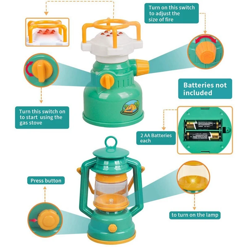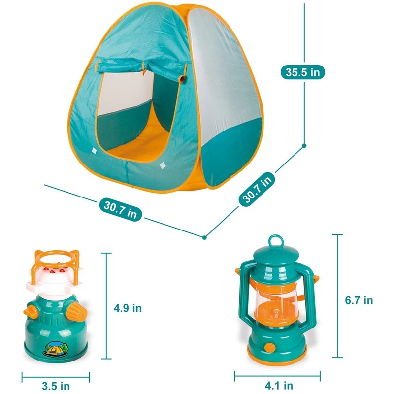 Hot-7 Pcs Kids Play Tent Kids Fold Up Play Tent with Camping Gear Outdoor Toy Tools Set Kids Toys P